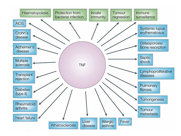 Dysregulation of TNF superfamily signaling has been implicated in numerous diseases, including cancer, autoimmune diseases, and chronic inflammatory conditions. For example, TNF-α overexpression is associated with rheumatoid arthritis and inflammatory bowel disease, while altered Fas-FasL signaling contributes to immune evasion in tumors. Because of their dual roles in immune activation and cell death, TNF superfamily proteins are prime targets for therapeutic intervention, with several biologics in use or in development for the treatment of inflammation and cancer.