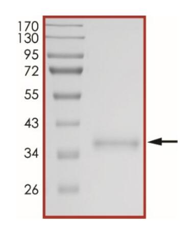 | Storage Buffer : | Recombinant protein stored in 50mM sodium phosphate, pH 7.5, 300mM NaCl, 150mM imidazole. |