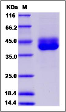 Molecular Mass : | The recombinant canine IL13RA2 comprises 328 amino acids and has a predicted molecular mass of 38.6 kDa. The apparent molecular mass of the protein is approximately 39-46 kDa in SDS-PAGE under reducing conditions due to glycosylation. |