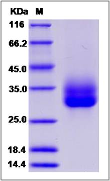 Molecular Mass : | The recombinant canine TNFRSF9 comprises 173 amino acids and has a predicted molecular mass of 18.4 kDa. The apparent molecular mass of the protein is approximately 28-34 kDa in SDS-PAGE under reducing conditions due to glycosylation. |