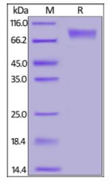 | Molecular Mass : | The protein has a calculated MW of 60.0 kDa. The protein migrates as 65-115 kDa under reducing (R) condition (SDS-PAGE) due to glycosylation. |