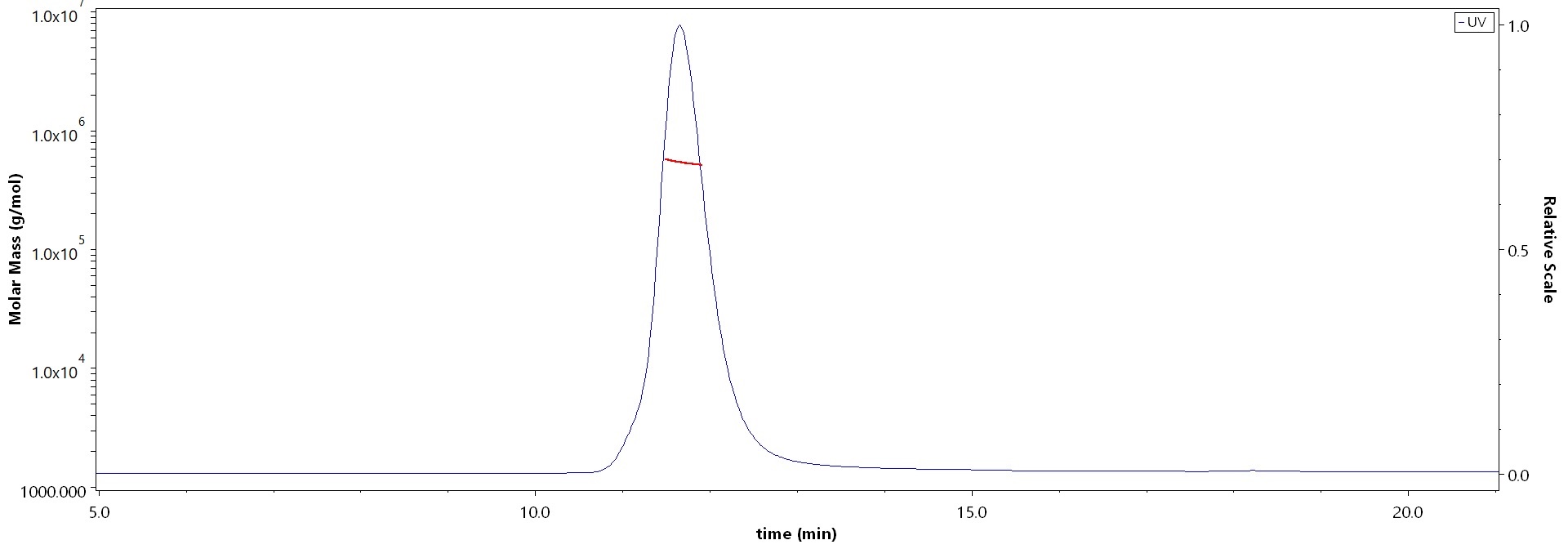 Molecular Mass : The protein has a calculated MW of 139.4 kDa. The protein migrates as 160-190 kDa under reducing (R) condition (SDS-PAGE) due to glycosylation.