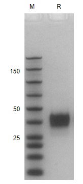 | Molecular Mass : | The protein has a calculated MW of 24 kDa.The reducing (R) heterodimer protein migrates as 25-50 kDa due to glycosylation |