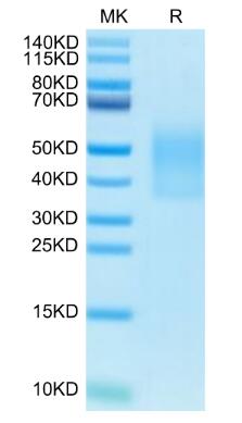 Molecular Mass : | The protein has a predicted MW of 21.14 kDa. Due to glycosylation, the protein migrates to 35-65 kDa based on Tris-Bis PAGE result. |
