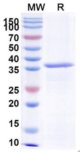 Molecular Mass : | The protein has a predicted MW of 35.20 kDa. The protein migrates to 35-36kDa based on SDS-PAGE result. |