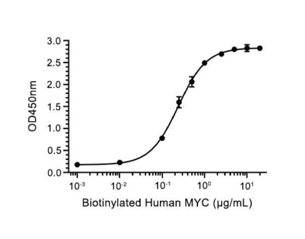 Measured by its binding ability in a functional ELISA. Immobilized Protein E7 at 10 μg/mL (100 μL/well) can bind Biotinylated MYC. The ED50 for this effect is ≤0.3071 μg/mL. |
