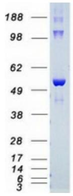 > 80% as determined by SDS-PAGE and Coomassie blue staining. |