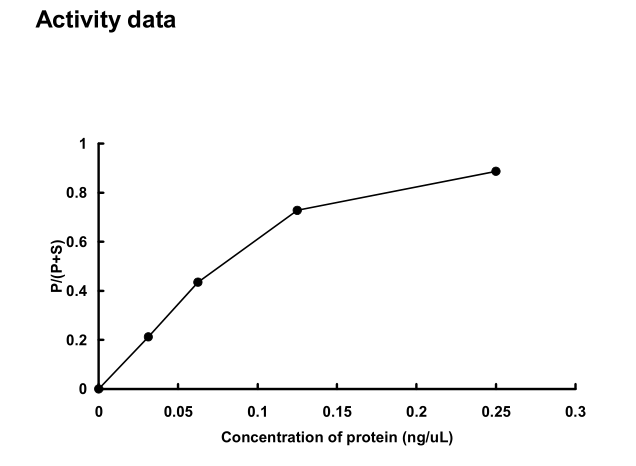 | Bio-activity : | The activity was measured by off-chip mobility shift assay. The enzyme was incubated with fluorecence-labeled substrate and Mg(or Mn)/ATP. The phosphorylated and unphosphorylated substrates were separated and detected by LabChip™3000. |