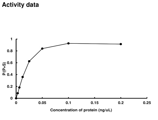 | Bio-activity : | The activity was measured by off-chip mobility shift assay(MSA). The enzyme was incubated with fluorecence-labeled substrate and Mg(or Mn)/ATP. The phosphorylated and unphosphorylated substrates were separated and detected by MSA device. |