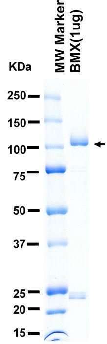 | Product Overview : | Full-length human BMX [1-675(end) amino acids of accession number NP_001712.1] was expressed as N-terminal GST-fusion protein (105 kDa) using baculovirus expression system. GST-BMX was purified by using glutathione sepharose chromatography. |