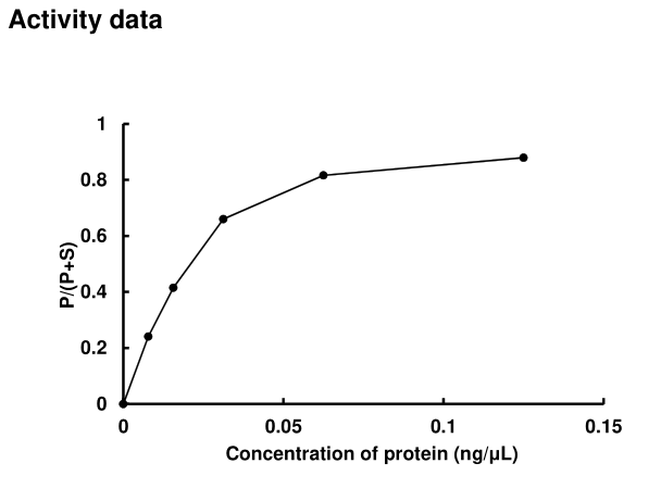 | Bio-activity : | The activity was measured by off-chip mobility shift assay(MSA). The enzyme was incubated with fluorecence-labeled substrate and Mg(or Mn)/ATP. The phosphorylated and unphosphorylated substrates were separated and detected by MSA device. |
