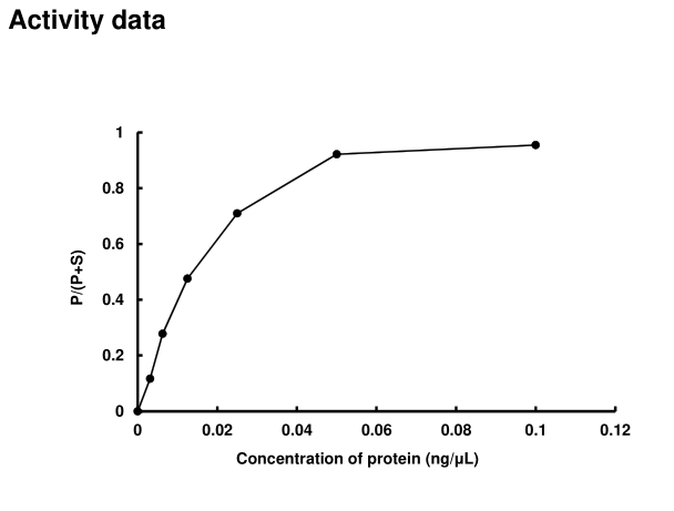 | Bio-activity : | The activity was measured by off-chip mobility shift assay(MSA). The enzyme was incubated with fluorecence-labeled substrate and Mg(or Mn)/ATP. The phosphorylated and unphosphorylated substrates were separated and detected by MSA device. |