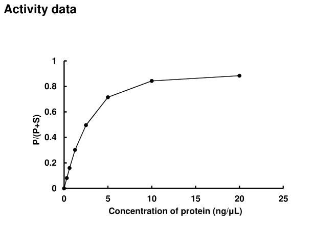| Bio-activity : | The activity was measured by off-chip mobility shift assay(MSA). The enzyme was incubated with fluorecence-labeled substrate and Mg(or Mn)/ATP. The phosphorylated and unphosphorylated substrates were separated and detected by MSA device. |