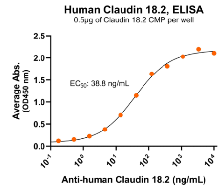 | Description : | Claudin 18.2, also known as CLDN18.2, is an integral membrane protein with 4 transmembrane domains, two extracellular loops, two intracellular loops, both N-terminus and C-terminus ends towards the cytosol. Human Claudin 18 is a member of Claudin protein family and involved in tight junction and cell-to-cell adhesion. Claudin 18.2 is not expressed in any healthy tissues with the exception of gastric mucosa. It is highly and widely expressed on various tumor cells including gastric cancer and pancreatic cancer. Claudin 18.2 plays critical role in cancer initiation and progression, and is a promising target for cancer therapeutics. |