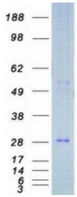 > 80% as determined by SDS-PAGE and Coomassie blue staining. |