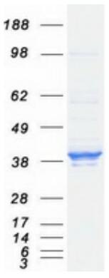 > 80% as determined by SDS-PAGE and Coomassie blue staining. |