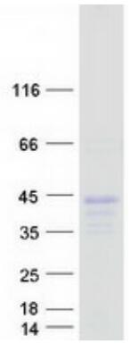 Recombinant protein was captured through anti-DDK affinity column followed by conventional chromatography steps. |