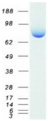 > 80% as determined by SDS-PAGE and Coomassie blue staining. |