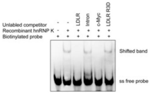 This gene belongs to the subfamily of ubiquitously expressed heterogeneous nuclear ribonucleoproteins (hnRNPs). The hnRNPs are RNA binding proteins and they complex with heterogeneous nuclear RNA (hnRNA). These proteins are associated with pre-mRNAs in the nucleus and appear to influence pre-mRNA processing and other aspects of mRNA metabolism and transport. While all of the hnRNPs are present in the nucleus, some seem to shuttle between the nucleus and the cytoplasm. The hnRNP proteins have distinct nucleic acid binding properties. The protein encoded by this gene is located in the nucleoplasm and has three repeats of KH domains that binds to RNAs. It is distinct among other hnRNP proteins in its binding preference; it binds tenaciously to poly(C). This protein is also thought to have a role during cell cycle progession. Several alternatively spliced transcript variants have been described for this gene, however, not all of them are fully characterized. |