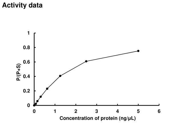 | Bio-activity : | The activity was measured by off-chip mobility shift assay(MSA). The enzyme was incubated with fluorecence-labeled substrate and Mg(or Mn)/ATP. The phosphorylated and unphosphorylated substrates were separated and detected by MSA device. |