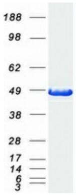 > 80% as determined by SDS-PAGE and Coomassie blue staining. |