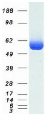 > 80% as determined by SDS-PAGE and Coomassie blue staining. |