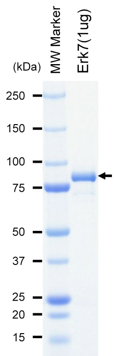 | Product Overview : | Full-length human Erk7 [1-544(end) amino acids of accession number NP_620590.2] was expressed as N- terminal GST-fusion protein (87 kDa) using baculovirus expression system. GST-Erk7 was purified by using glutathione sepharose chromatography. |