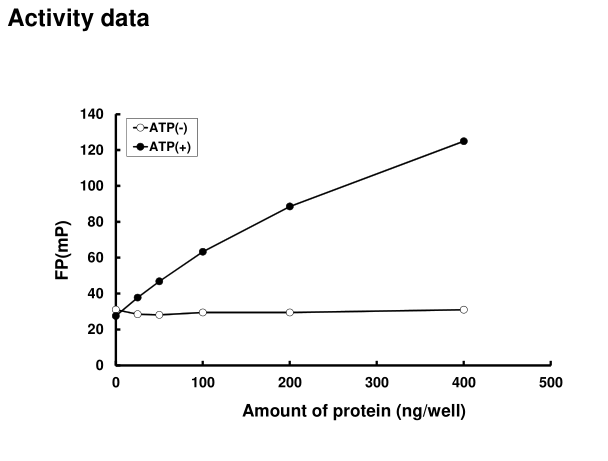 | Bio-activity : | The activity was determined by IMAP™ assay. The enzyme was incubated with fluorescein labeled peptide and phosphorylation was detected by IMAP™ technology (fluorescence polarization). |