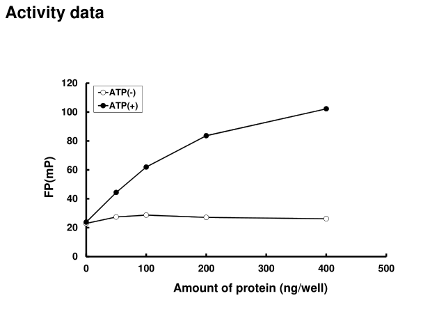 | Bio-activity : | The activity was determined by IMAP™ assay. The enzyme was incubated with fluorescein labeled peptide and phosphorylation was detected by IMAP™ technology (fluorescence polarization). |