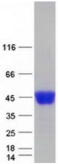 > 80% as determined by SDS-PAGE and Coomassie blue staining. |