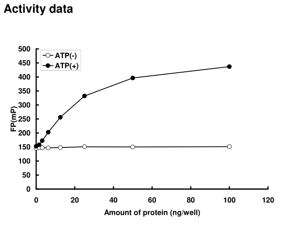 | Bio-activity : | The activity was determined by IMAP™ assay. The enzyme was incubated with fluorescein labeled peptide and phosphorylation was detected by IMAP™ technology (fluorescence polarization). |