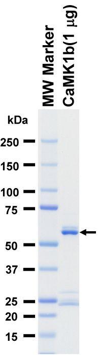 | Product Overview : | Full-length human CaMK1β[1-343(end) amino acid of accession number Q6P2M8] was expressed as N- terminal GST-fusion protein (66 kDa) using baculovirus expression system. GST-CaMK1βwas purified by using glutathione sepharose chromatography. |