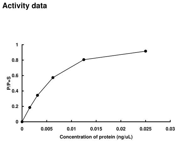 | Bio-activity : | The activity was measured by off-chip mobility shift assay(MSA). The enzyme was incubated with fluorecence-labeled substrate and Mg(or Mn)/ATP. The phosphorylated and unphosphorylated substrates were separated and detected by MSA device. |