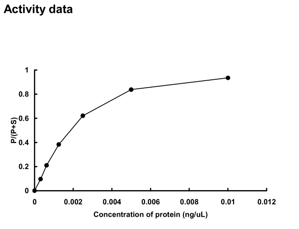 | Bio-activity : | The activity was measured by off-chip mobility shift assay. The enzyme was incubated with fluorecence-labeled substrate, Mg(or Mn)/ATP, and Ca/Lipid Activator. The phosphorylated and unphosphorylated substrates were separated and detected by LabChip™3000. |