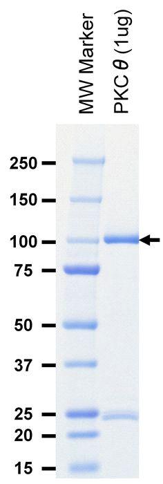 | Product Overview : | Full-length human PKCθ [1-706(end) amino acids of accession number NP_006248.1] was expressed as N-terminal GST-fusion protein (109 kDa) using baculovirus expression system. GST-PKCθ was purified by using glutathione sepharose chromatography. |