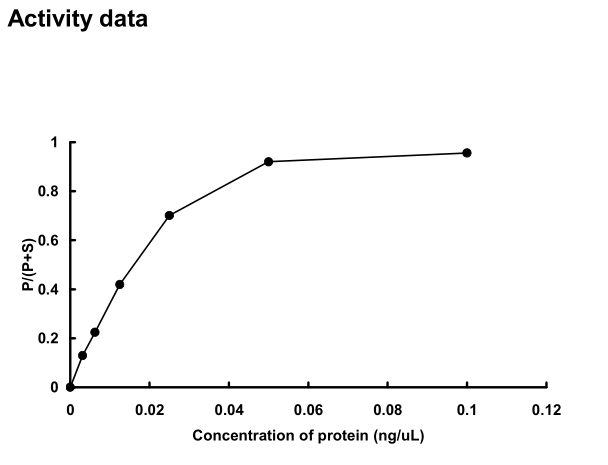 | Bio-activity : | The activity was measured by off-chip mobility shift assay. The enzyme was incubated with fluorecence-labeled substrate and Mg(or Mn)/ATP. The phosphorylated and unphosphorylated substrates were separated and detected by LabChip™3000. |
