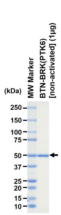 | Product Overview : | Full-length human BRK [2-451(end) amino acids of accession number NP_005966.1] was expressed as N- terminal DYKDDDDK tagged, biotinylated protein (55 kDa) using baculovirus expression system. The protein was purified by using DYKDDDDK tag antibody agarose. |
