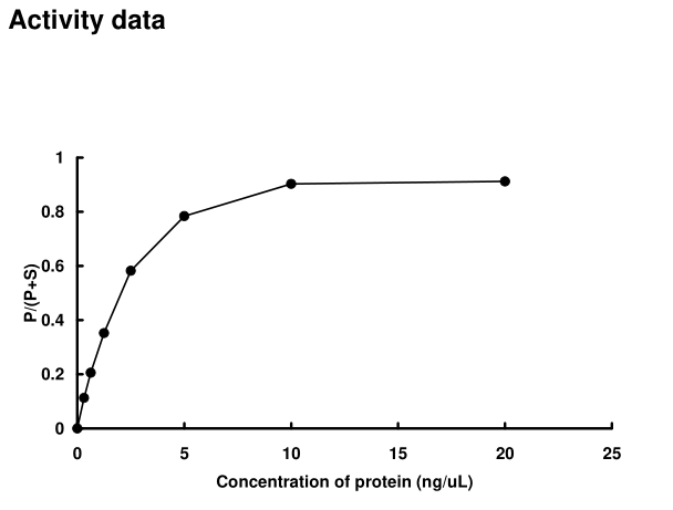 | Bio-activity : | The activity was measured by off-chip mobility shift assay(MSA). The enzyme was incubated with fluorecence-labeled substrate and Mg(or Mn)/ATP. The phosphorylated and unphosphorylated substrates were separated and detected by MSA device. |