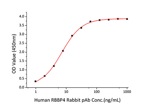 | Bio-activity : | Measured by its binding ability in a functional ELISA. Immobilized Human RBBP4 Protein at 1 μg/mL (100 μL/well) can bind RBBP4 Rabbit pAb with a linear range of 0.976-7.09 ng/mL. |