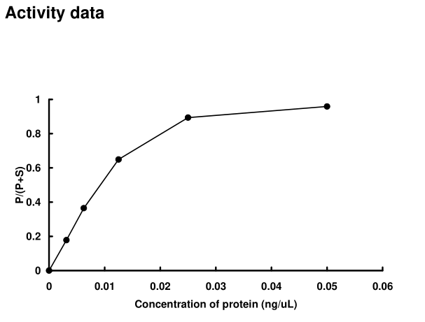 | Bio-activity : | The activity was measured by off-chip mobility shift assay. The enzyme was incubated with fluorecence-labeled substrate and Mg(or Mn)/ATP. The phosphorylated and unphosphorylated substrates were separated and detected by LabChip™3000. |