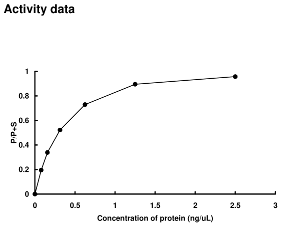 | Bio-activity : | The activity was measured by off-chip mobility shift assay(MSA). The enzyme was incubated with fluorecence-labeled substrate and Mg(or Mn)/ATP. The phosphorylated and unphosphorylated substrates were separated and detected by MSA device. |