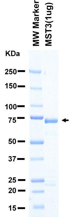 | Product Overview : | Full-length human MST3 [1-431(end) amino acids of accession number NP_001027467.2] was expressed as N-terminal GST-fusion protein (75 kDa) using baculovirus expression system. GST-MST3 was purified by using glutathione sepharose chromatography. |