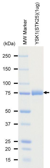 | Product Overview : | Full-length human YSK1 [1-426(end) amino acids of accession number NP_006365.2] was expressed as N-terminal GST-fusion protein (75 kDa) using baculovirus expression system. GST-YSK1 was purified by using glutathione sepharose chromatography. |