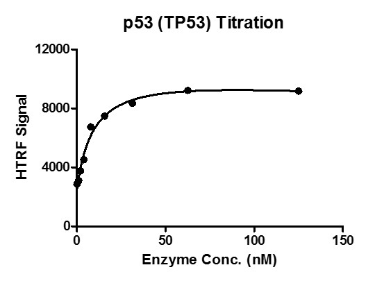 Recombinant p53 (TP53) protein is supplied in 25 mM HEPES-NaOH pH 7.5, 300 mM NaCl, 10% glycerol, 0.04% Triton X-100 and 0.5 mM TCEP. |