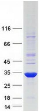 > 80% as determined by SDS-PAGE and Coomassie blue staining. |