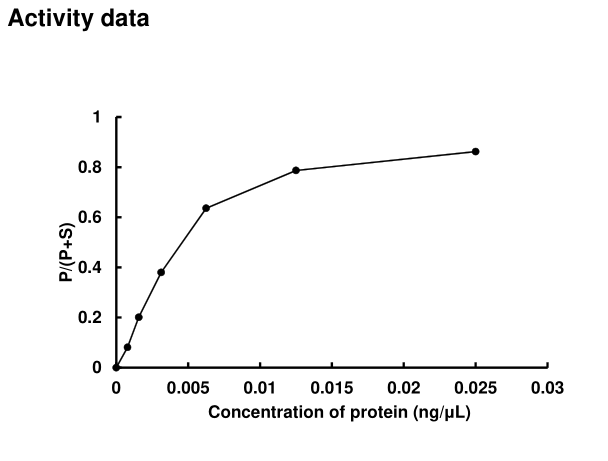 | Bio-activity : | The activity was measured by off-chip mobility shift assay(MSA). The enzyme was incubated with fluorecence-labeled substrate and Mg(or Mn)/ATP. The phosphorylated and unphosphorylated substrates were separated and detected by MSA device. |