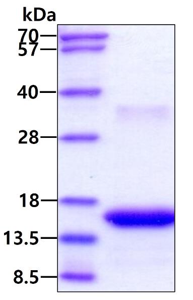 | Description : | Thioredoxin-1 is a low molecular weight redox protein. Thioredoxin-1 contains a redox active disulfide/dithiol group within the conserved Cys-Gly-Pro-Cys active site. It is involved in the first unique step in DNA synthesis. Thioredoxin-1 also provides control over a number of transcription factors affecting cell proliferation and death through a mechanism referred to as redox regulation. Recombinant Mouse Thioredoxin-1 was expressed in E. coli and purified by using conventional chromatography techniques. |