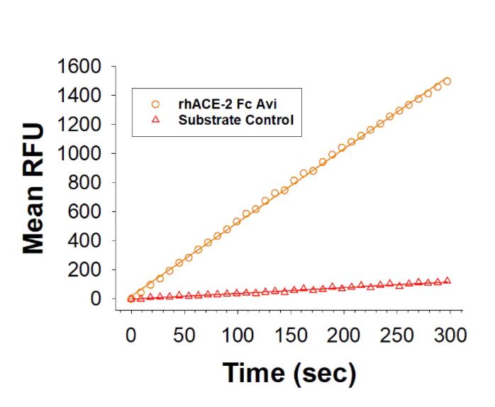 Measured by its binding ability in a functional ELISA. When Recombinant SARS-CoV-2 Spike RBD Fc Chimera is immobilized at 0.2 µg/mL (100 µL/well), Biotinylated Recombinant Human ACE2 Fc Chimera Avi-tag binds with an ED50 of 0.6-4.8. |