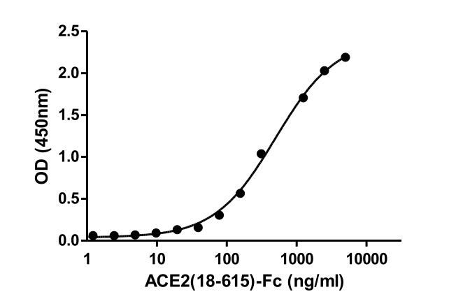 Measured by its binding ability in a functional ELISA. Immobilized 2019-nCoV spike protein RBD (His tag) at 2μg/mL (100 μL/well) can bind to human ACE2 (19-740) protein (Fc tag). |