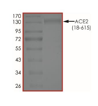 | Product Overview : | Recombinant human angiotensin-converting enzyme 2 (ACE2) extracellular domain (18-615) was expressed in CHO cells using a C-terminal Fc tag. |